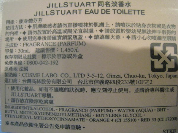 [彩妝]我的第一瓶香水─JILL STUART同名淡香水