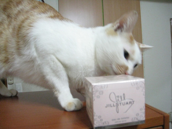 (某隻貓因為不爽我把香水擺在牠的寶座上,所以一整個想把香水推下去XD)